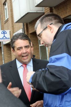 Und die Geräuschkulisse verdoppelte sich noch einmal, als gegen 19 Uhr mit SPD-Parteivorsitzenden Sigmar Gabriel ein SPD-Macher die Szene betrat. Sichtlich überrascht, hatte er sich doch auf eine eher freundlich gesellige Kulisse beim SPD Frühlingsfest in Ehrenfeld eingerichtet.