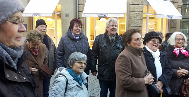 So trabte man musikalisch durch die Innenstadt, besuchte alte Gässchen, bekannte Sehenswürdigkeiten und forschte, wo denn die „Päälekett“ verblieben war und „Et Friedche vun d'r Frittebud“ nun wirklich zu finden waren. Und es durfte ja immer wieder gesungen werden. Und zum Schluss das Sion-Kölsch im Brauhaus schmeckte dreifach gut. Diese Tour zum Jahresauftakt muss der BRH unbedingt wiederholen.