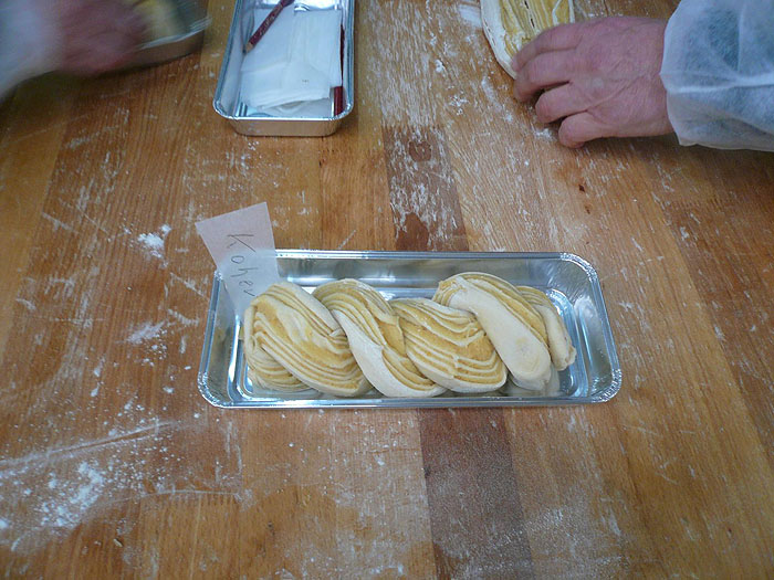 (Euskirchen-Kuchenheim) Schön aufgereiht standen die schmackhaft aussehenden und verlockend süß wirkenden Striezel vor den Besuchern, frisch aus dem Ofen. Sie sahen toll und lecker aus und trugen alle eine Besonderheit: Ein kleines Namensschildchen, das ermöglichte, den Besitzer ausfindig zu machen. Bernd Koherr – der auch die Fotos zu diesem Bericht lieferte – richtete gezielt und stolz den Fokus seiner Kamera auf sein Kunstwerk aus der Bäckerstube.