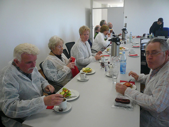 Es gab aber mehrere Höhepunkte dieser Betriebsbesichtigung: Zum Beispiel das opulente Frühstück gleich zur Begrüßung. Und dann der Duft des frischgebackenen Brotes, einfach herrlich. Und es brachte Abwechslung nicht nur in die Nasen. Geschmack, saftige Krume, krachende Kruste, das verlockt immer wieder. Da ging es den Teilnehmern vor Ort wie uns, der wir diese Zeilen lesen.