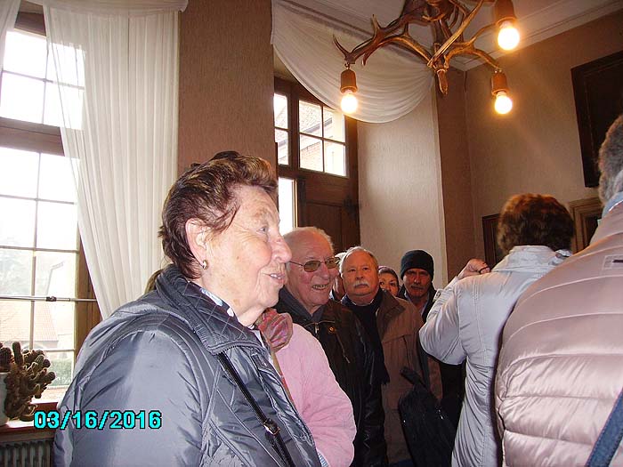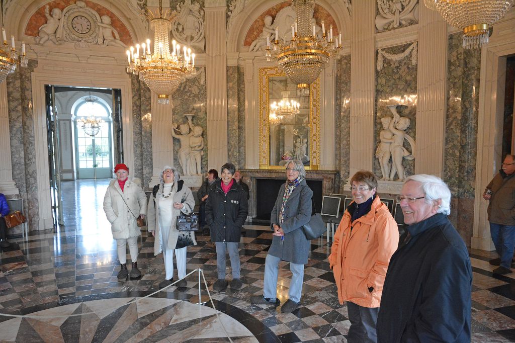 Der Besuch begann im riesigen Park, der noch im Winterschlaf ruhte, setzte sich fort mit Besichtigungen in Gemächern und endete in einem herrschaftlichen Gebäudetrakt, wo für das gemeinsame Mittagsmahl zur Stärkung für das weitere Programm gedeckt war.