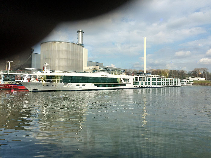 Leni Schömer: "Wir kreuzten in der Tat zwischen Container-Riesen, Kranbrücken und Schrottumschlag-Anlagen!" Die Rheinhäfen in Köln sind schließlich europaweit bekannt und eignen sich auch gut für den Start auf Kreuzfahrten.