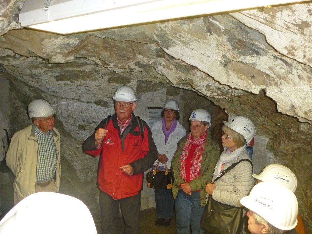 Eng sind die in den Stein geschlagenen Stollen im Naturbunker Niederzissen. Hier wurde man daran erinnert: 300 bis 400 Menschen suchten während der Luftangriffe des Zweiten Weltkriegs Unterschlupf in der etwa 300 Quadratmeter großen Bunkeranlage.