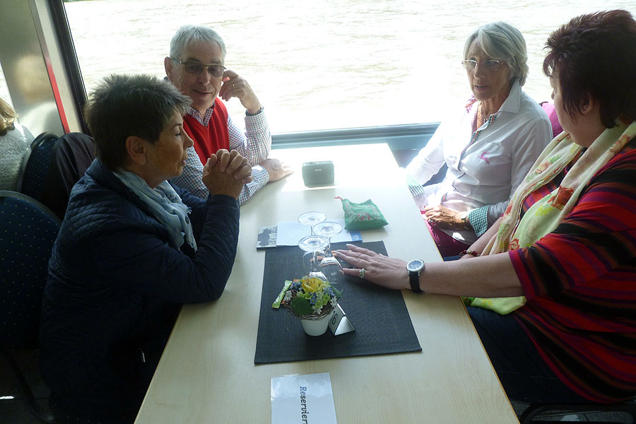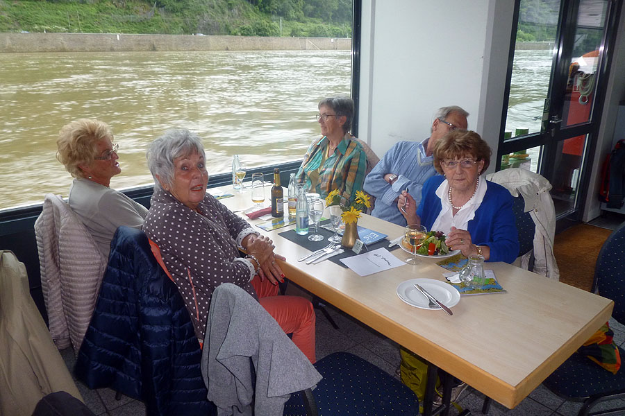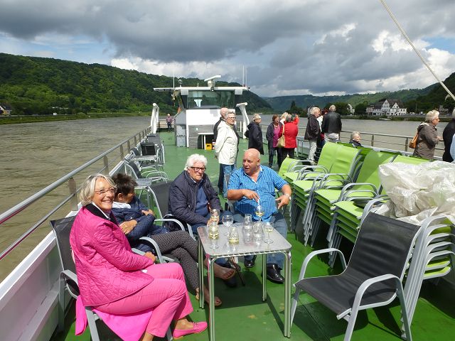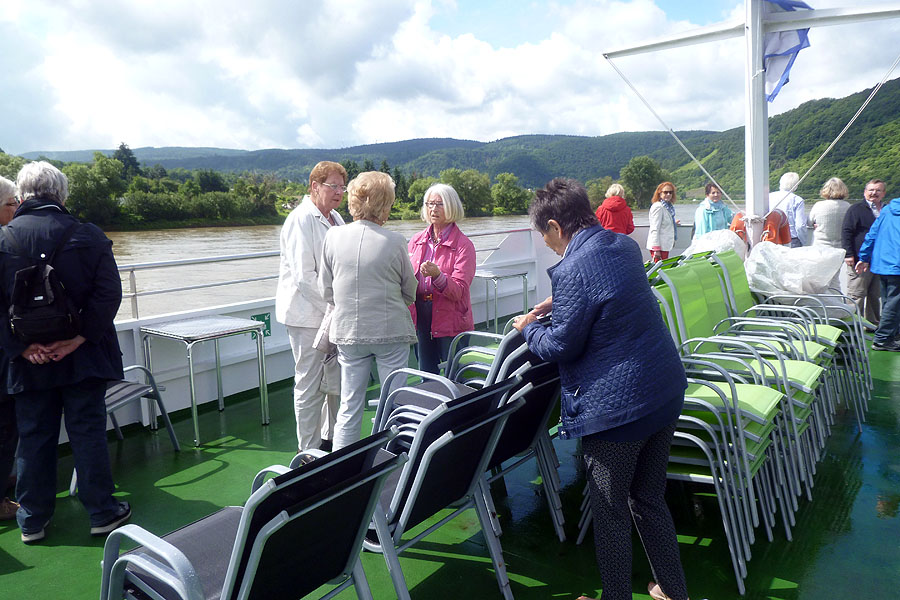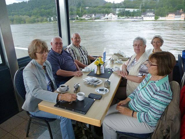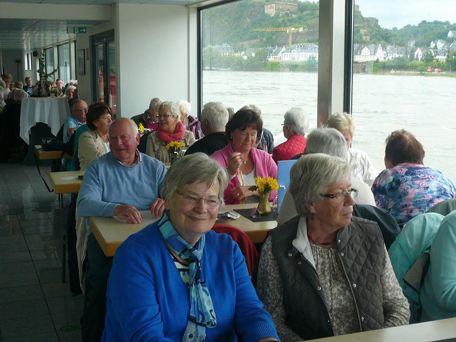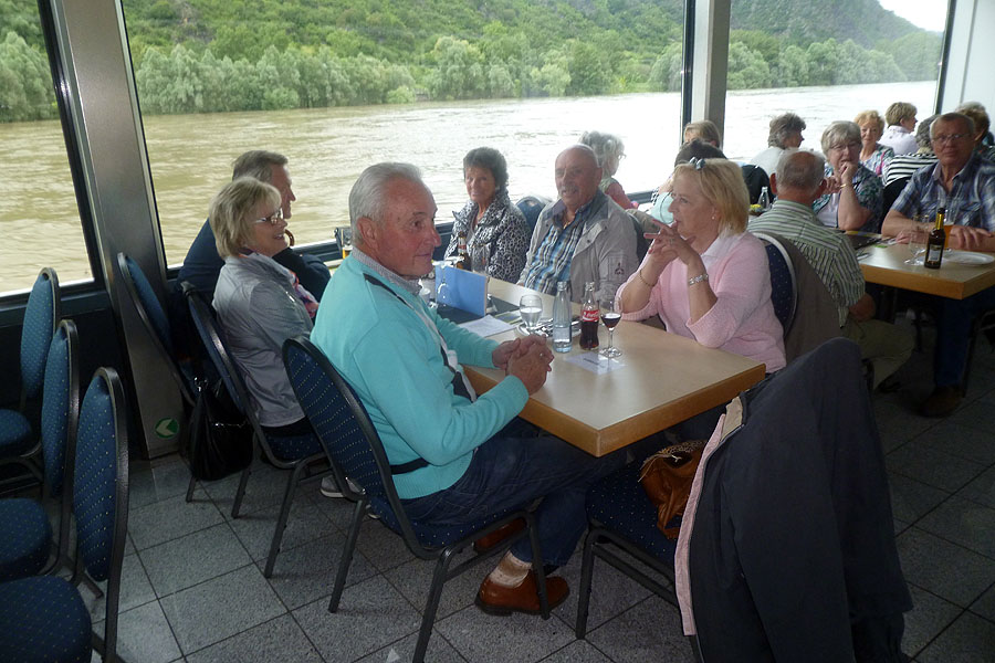 Bis Koblenz mit dem Bus und dann per Schiff das wohl ganzjährig schönste, romantische Rheintal rauf bis Rüdesheim. Natürlich geführt, kommentiert - die Sehenswürdigkeiten links und rechts des Ufers. Übrigens auch gut verpflegt. Da musste eine prima Stimmung aufkommen. Das funktionierte erstaunlich leicht, gerade in der heutigen, etwas eher unfreundlichen Zeit!