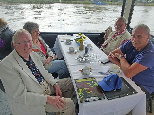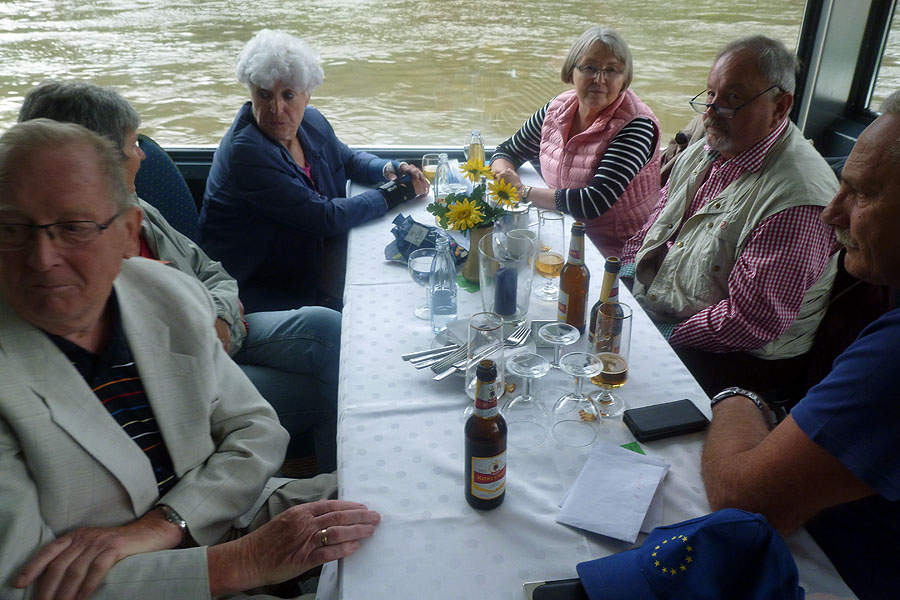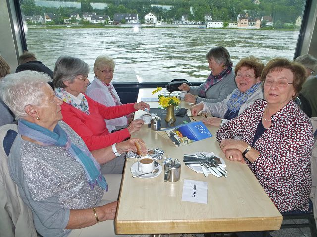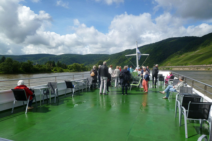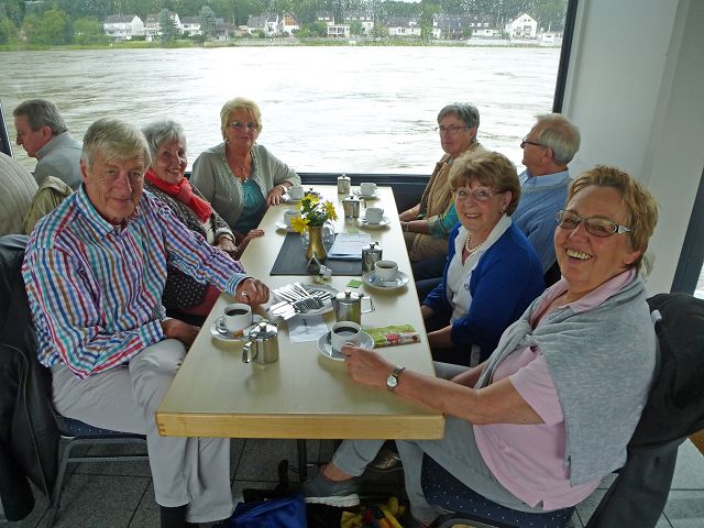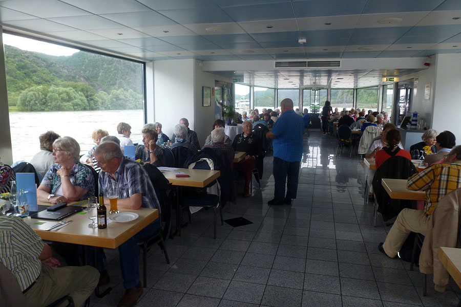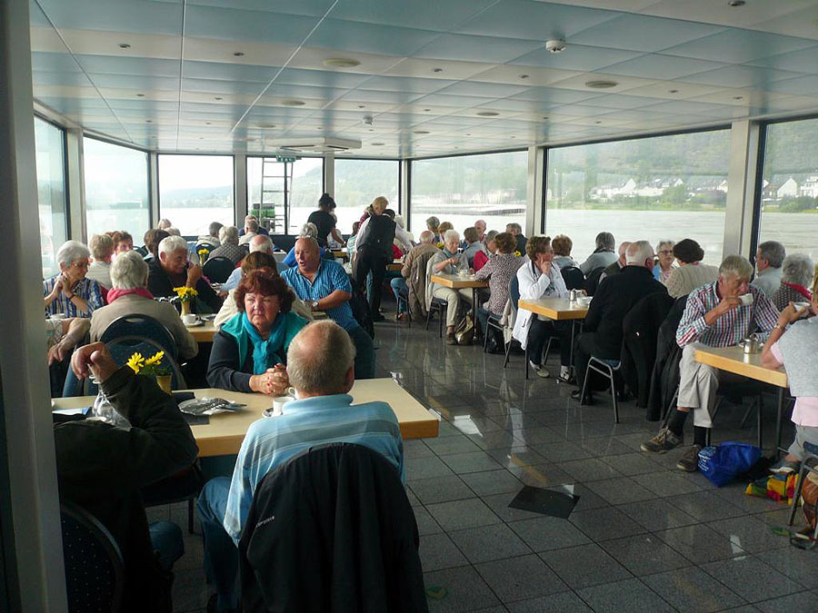 Bis Koblenz mit dem Bus und dann per Schiff das wohl ganzjährig schönste, romantische Rheintal rauf bis Rüdesheim. Natürlich geführt, kommentiert - die Sehenswürdigkeiten links und rechts des Ufers. Übrigens auch gut verpflegt. Da musste eine prima Stimmung aufkommen. Das funktionierte erstaunlich leicht, gerade in der heutigen, etwas eher unfreundlichen Zeit!
