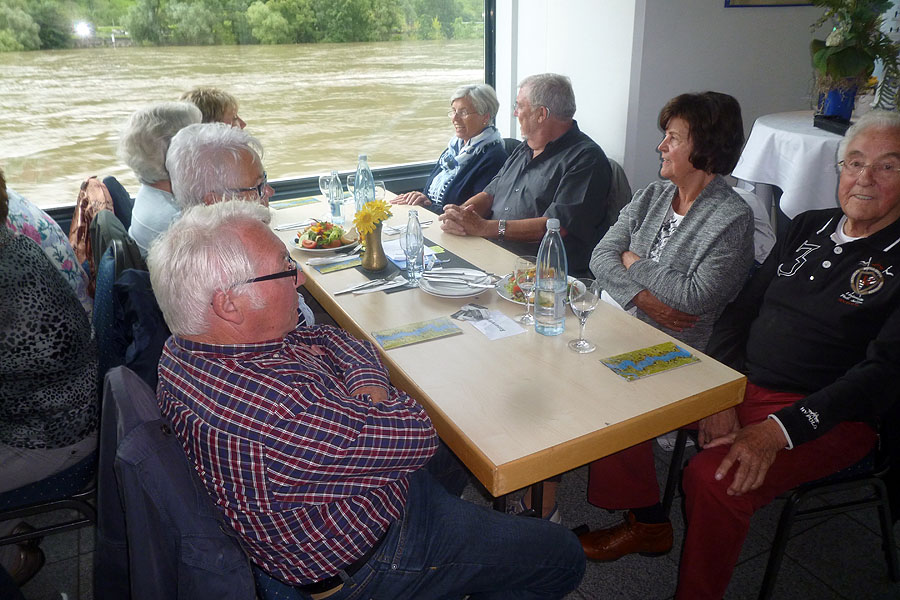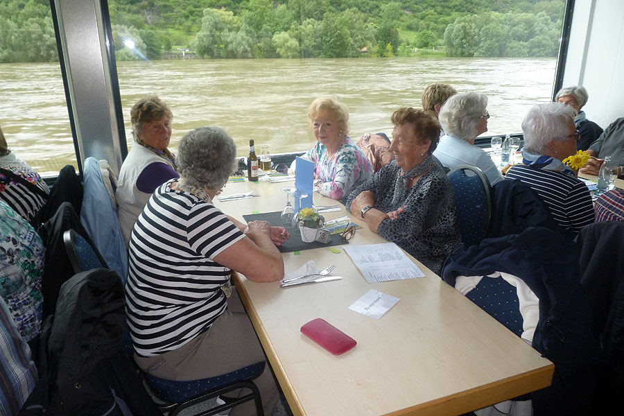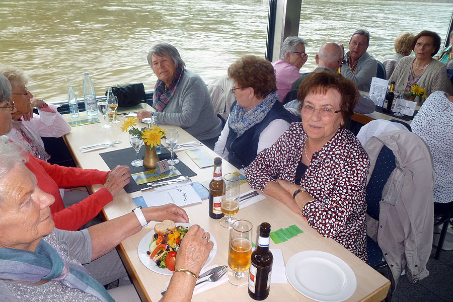 Zählt man die beiden Busfahrer dazu, dann wurde die Teilnehmerzahl 100 geknackt. So viele Senioren waren nämlich mit den Tourenleitern Werner Krings und Klaus Reimer im Rheintal unterwegs. Dabei hatte man noch Glück mit dem Wetter, Regentropfen fielen immer dann, wenn man trocken saß.