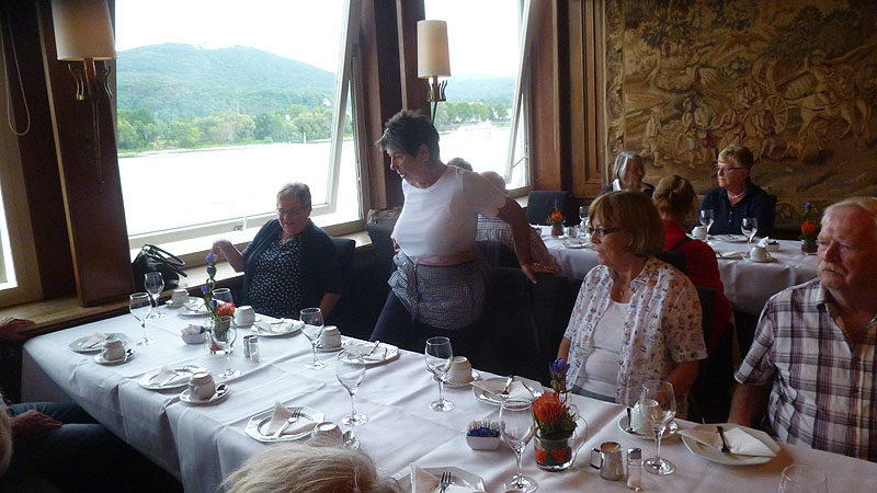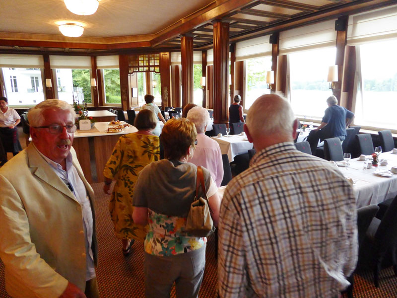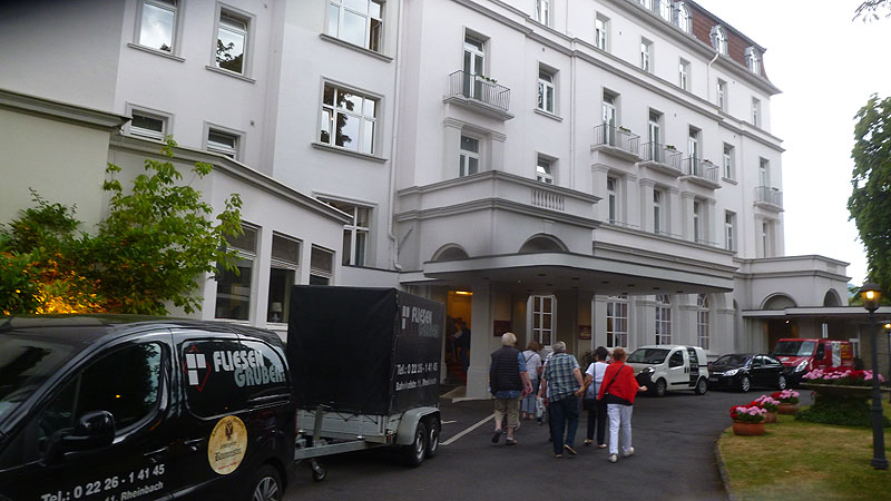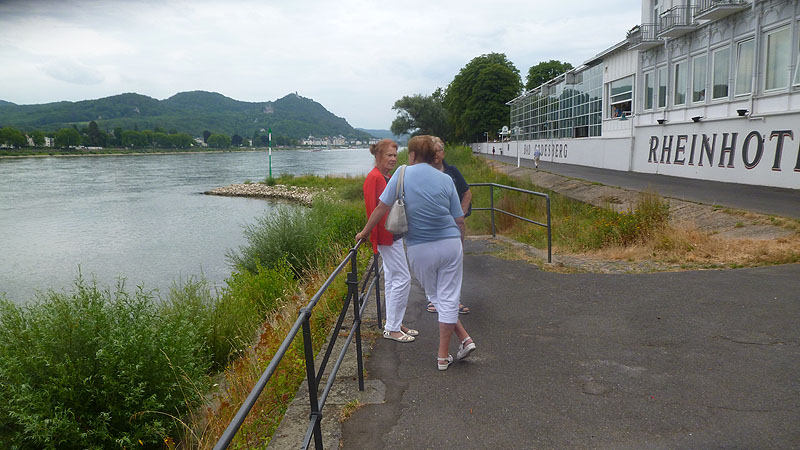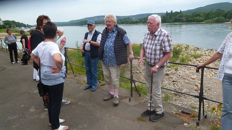 Beeindruckend war dann zuletzt der Besuch des bekannten geschichtsträchtigen „Rheinhotel Dreesen“. „Kaffee und Kuchen waren gut - besonders jedoch der angeschlossene Kastanien-(Bier)Garten“, berichtet Peter Goldschmidt. Hier musste auch Stadtführer Hönig mit einer Haus-Präsentation ran, weil Hausherr Fritz Dreesen terminlich verhindert war. Teilnehmer Georg Brölingen: „Die Resonanz aller Gäste aber war gut, besser hätte es Herr Dreesen auch nicht machen können!“ Einen kleinen Minuspunkt verteilte dann doch Peter Goldschmidt für den Fall der Wiederholung: „Hier gab es eine ganz tolle Aussicht, nicht nur auf den Petersberg, ...aber man hätte hier auch durchaus mehr Zeit einplanen können!“