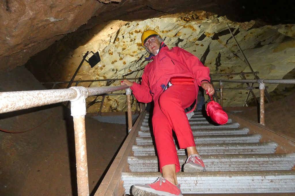 Mit großem Wissen, Kompetenz und sachkundigen Ausführungen brachte hier die Führerin den neugierigen „älteren Bergleuten“ die Zeit des Bleiabbaus - ausgemalt mit viel Hintergrundwissen - näher. Über eine steile Treppe hinauf konnten die Besucher u.a. einen Blick auf einen sehr großen Abraumbereich erlangen. Tourleiterin Lorbach hält fest: „Ich denke, wir hätten Karoline Schommer noch länger zuhören können, aber es wartete im Café noch Kaffee und Kuchen auf uns.“