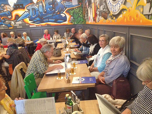 Zum Mittagstisch hatte Tourleiter Weinand auch eine gute Wahl getroffen. Man war zu Gast im "Birreria" und konnte hier sogar von einer BRH-Karte speisen. Die Bayerische Gaststätte mit hauseigener Brauerei und rustikaler deutsch-italienischer Küche in traditioneller Brauhaus-Atmosphäre nahm die Euskirchener Senioren sehr freundlich auf und ließ kaum Wünsche unerfüllt. Tourleiter Weinand brachte für uns auch die Fotos mit.