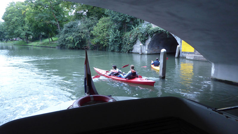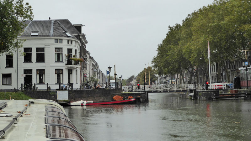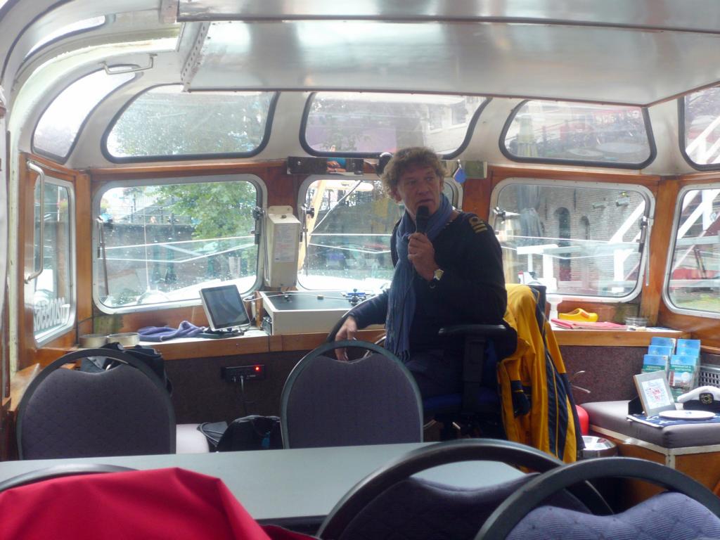 Es war bewölkt und erste einzelne Regentropfen fielen, als wir zu viert auch noch ein Boot für eine anderthalbstündige Grachtenrundfahrt bestiegen. Leider konnte der Skipper nur sechs Passagiere zählen, aber er war trotzdem freundlich und gut gelaunt. Von ihm und zusätzlich vom Band hörten wir interessante Geschichten und Erläuterungen zu den an Land vorbeiziehenden historischen Gebäuden. Danach reichte die Zeit noch für einen kleinen Einkauf, bevor bei einem abschließenden Kaffee auf den Bus zur Rückfahrt gewartet wurde.