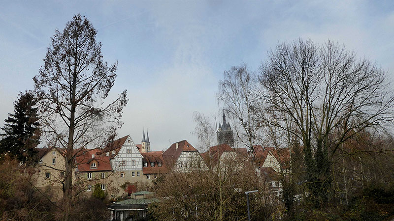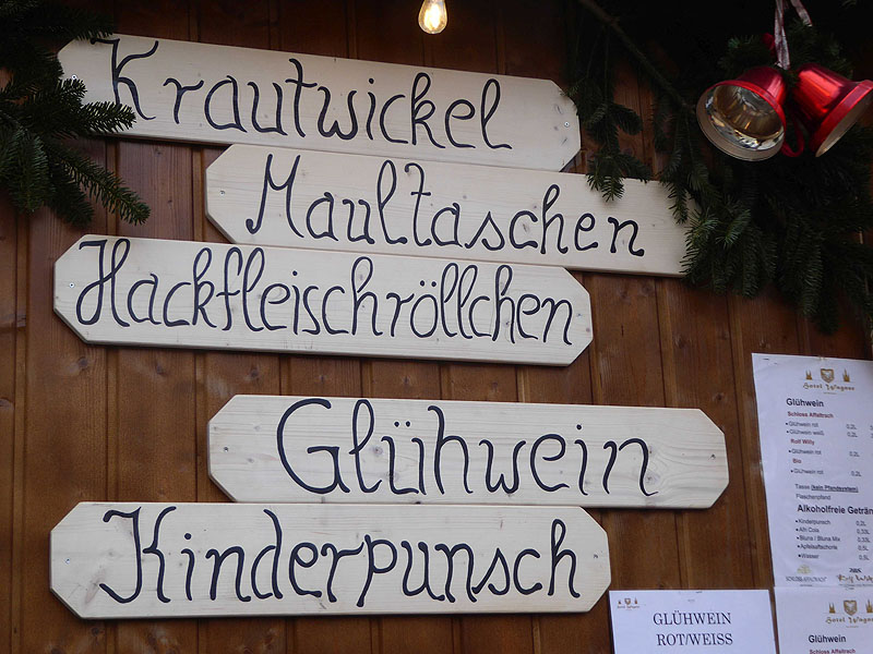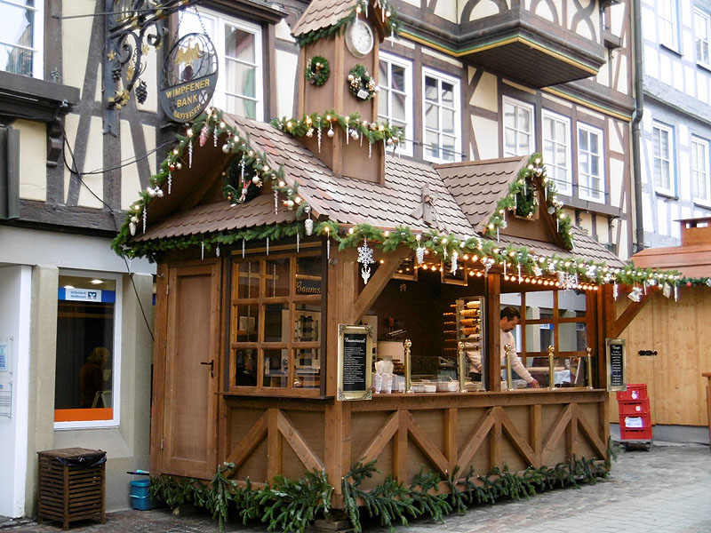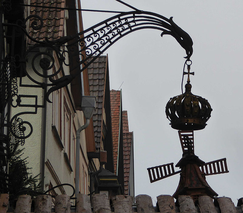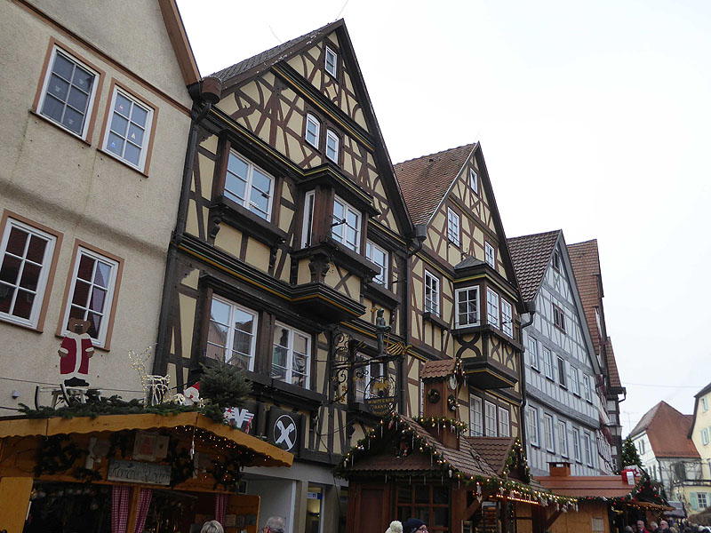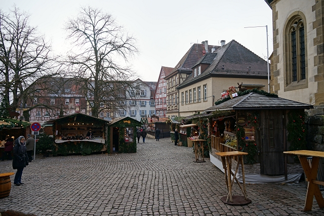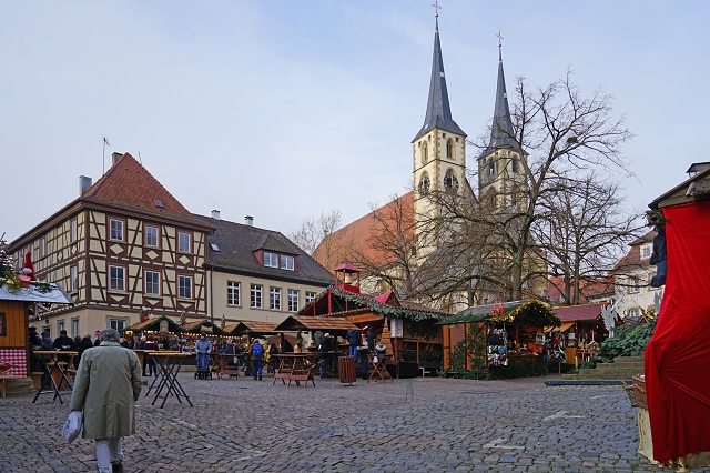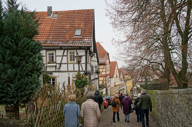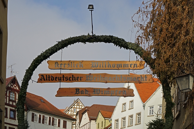 Das erste Ziel "Bad Wimpfen" ist für viele ein unbekannter Ort, der "Herzlich Willkommen" heißt. Eine Herausforderung sind die auf- und absteigenden Straßenzüge, auch für die Fotografen auf Entdeckungstour. Immer wieder Fachwerk und Zunftzeichen, eingestreut fachwerklich gebaute und stilvoll dekorierte Buden. Der "Altdeutsche Weihnachtsmarkt" bot viel Raum zum Bewundern (und Kaufen) von Kunsthandwerk, und das bei auffallend wenigen Glühwein- und Fressbuden. Hier wäre man gerne etwas länger geblieben, bevor der Bus das nächste Ziel anfuhr.