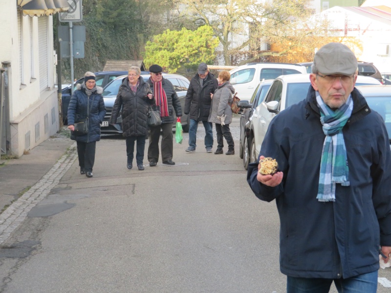Gestartet wurde an einem nieselnden Freitagmorgen zum ersten Ziel: Bad Wimpfen. Der Ort überraschte mit seinem wunderschönen Weihnachtsmarkt, eine echte Empfehlung. "...bei dem sich unser Heimatstädtchen schämen muss," schreibt uns Georg Scholl ins Buch. Und mit Hürden, die unsere Senioren alle gelassen und sportlich nahmen. Tourleiter Lohmeyer entschuldigte sich: "Achtung Kopfsteinpflaster" hätte in den Informationen ergänzt werden müssen in ... und einige recht steile Straßen. Ich hätte gerne die Teilnehmer dazu vorgewarnt!“