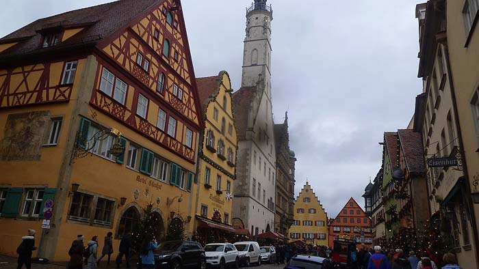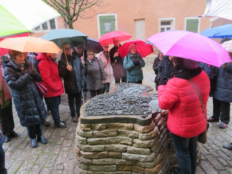 Der zweite Tag begann mit ’zwei sehr netten und kompetenten Stadtbilderklärerinnen’ (Originalton eines Berichterstatters). Erinnerungen an die Heimat wurden wach: Rothenburg und Bad Münstereifel sind die einzigen deutschen Städte mit einer jeweils vollständig erhaltenen Stadtmauer. Ein Bummel über den Weihnachtsmarkt oder, um dem wieder eingesetzten Regen zu entkommen, ein Restaurantbesuch oder ein Spaziergang auf der durchgängig überdachten Stadtmauer boten sich da förmlich an. Nachmittags ging es dann noch ins Mittelalterliche Kriminalmuseum. Sehr gruselig? Tourleiter Lohmeyer noch mal: "Ich persönlich fand es nicht gruselig, sondern wie alle aus meiner Teilgruppe, im Gegenteil sehr interessant!" Übrigens mit einem Einblick in das mittelalterliche Sittenleben und die Bestrafung von heute völlig normalem Verhalten.