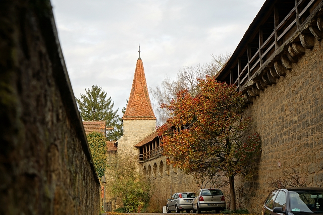 Rothenburg verfügt über eine vollständige Stadtmauer. Vom Wehrgang aus hat man schöne Einblicke auf die Stadt.