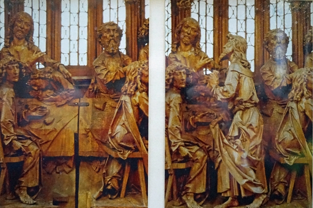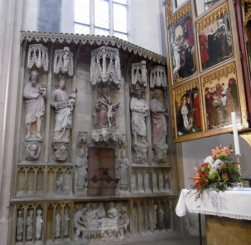 Auf der Empore steht der Heilig-Blut-Altar des Würzburger Bildhauers Tilman Riemenschneider. Ungewöhnlich ist die Position von Judas, rechts neben Christus (normalerweise am Rand positioniert). Dazu kommt die Besonderheit, dass diese Figur entfernt werden kann. Wird die Figur entfernt, sieht man dahinter den schlafenden Apostel Johannes (siehe Vergleich).