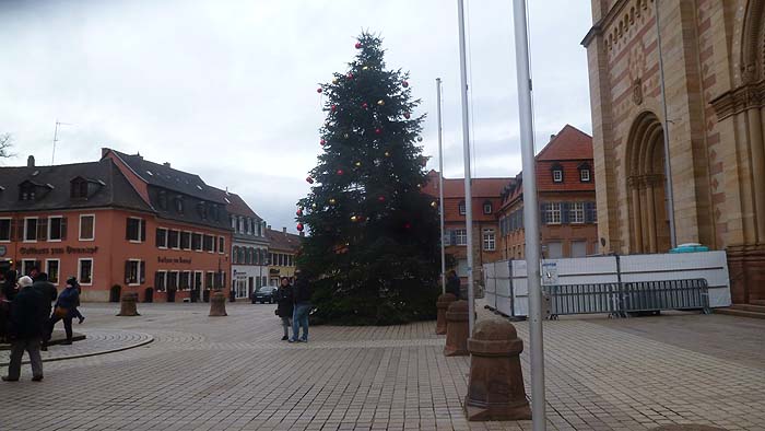 Den letzten Tag prägt obligatorisch die Rückreise: Gut gefrühstückt führt der Fahrweg nach Speyer. Hier prägt das Stadtbild ein außen wie innen mächtiger Dom, ... von dem aus auch hier (schon wieder) ein Weihnachtsmarkt abgeht, enger als in Bad Wimpfen und Rothenburg. Regenschauer animieren dazu, Platz in einem gut gefüllten Café zu suchen und/oder (später) ein Konzert im Dom zu genießen, bevor es dann endgültig nach Hause geht.