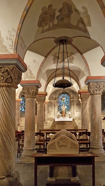 Die Klosterkirche, die 1209 abschließend geweiht wurde, sowie die Krypta.