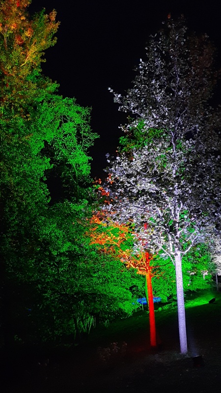Sorgen wegen der Pandemie brauchte man nicht zu hegen, das weitläufige Parkgelände macht die Leuchtenden Gärten unter Corona-Bedingungen möglich. Die Freude war also ungeteilt: Die mit warmen Lichttönen erleuchteten Wege, die erstrahlten Büsche und Bäume in den unterschiedlichsten Farben, selbst die Rasenflächen und Gebäude wurden mit Illuminationen faszinierend in Szene gesetzt. Die Besucher jeden Alters wurden regelrecht eingefangen, vom Tageslicht bekannte Ecken wurden durch phantastische Lichtinszenierungen neu interpretiert.